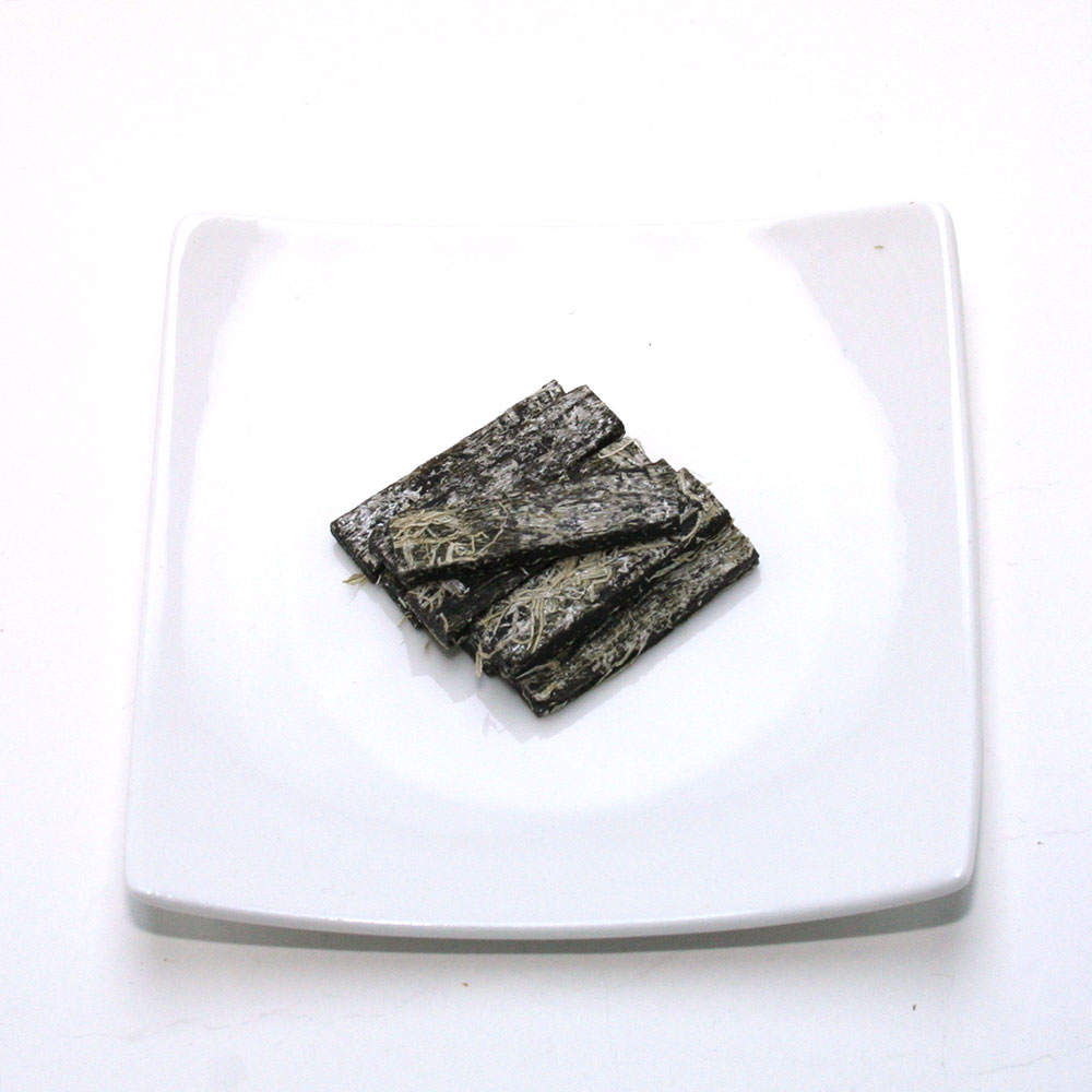 厳選された北海道産の昆布で作ったとろろ昆布を巻き付けました。昆布の香りと、とろろの風味の2つの味が、お楽しみいただけるユニークな製品です。