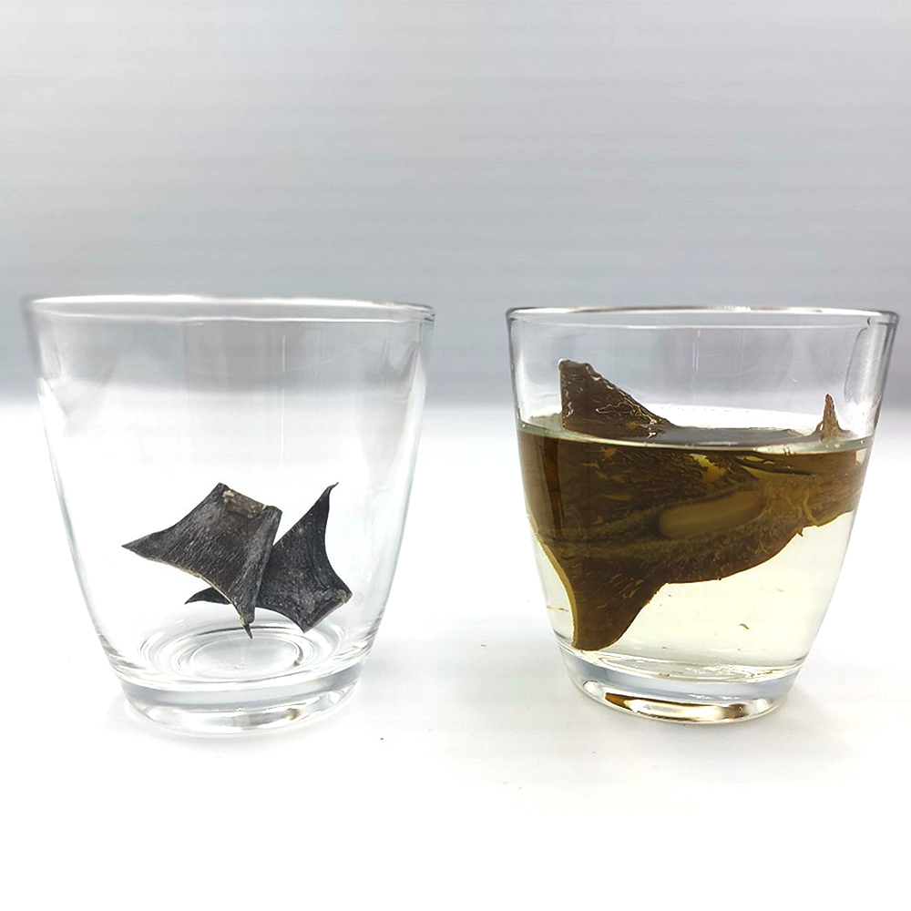 根昆布水として、強い粘りこそ出ませんが、羅臼昆布のうま味と風味をお楽しみ頂けますので、続けやすい味わいの根昆布水をお作りいただけます。
