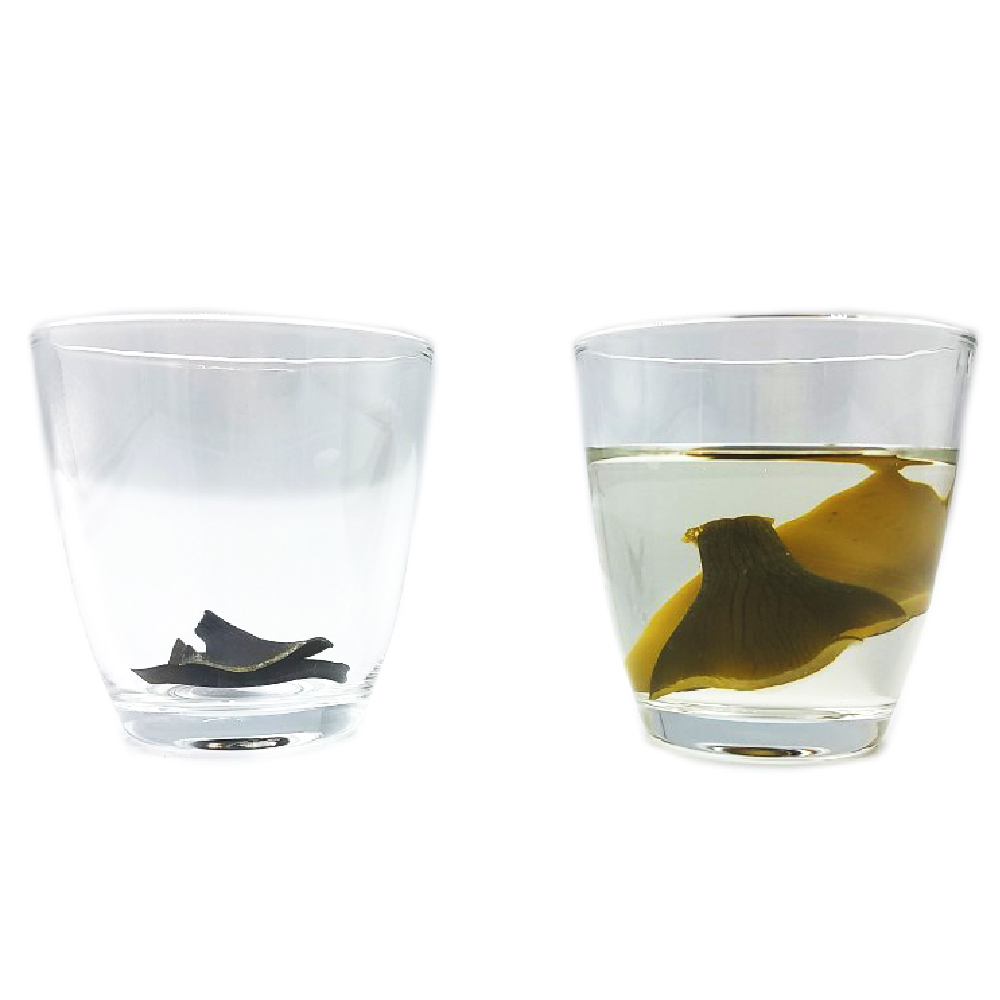 STEP.2根昆布をお好みの数だけコップに入れて水を注ぎます。 ▼ 昆布ごとの目安 ▼ |